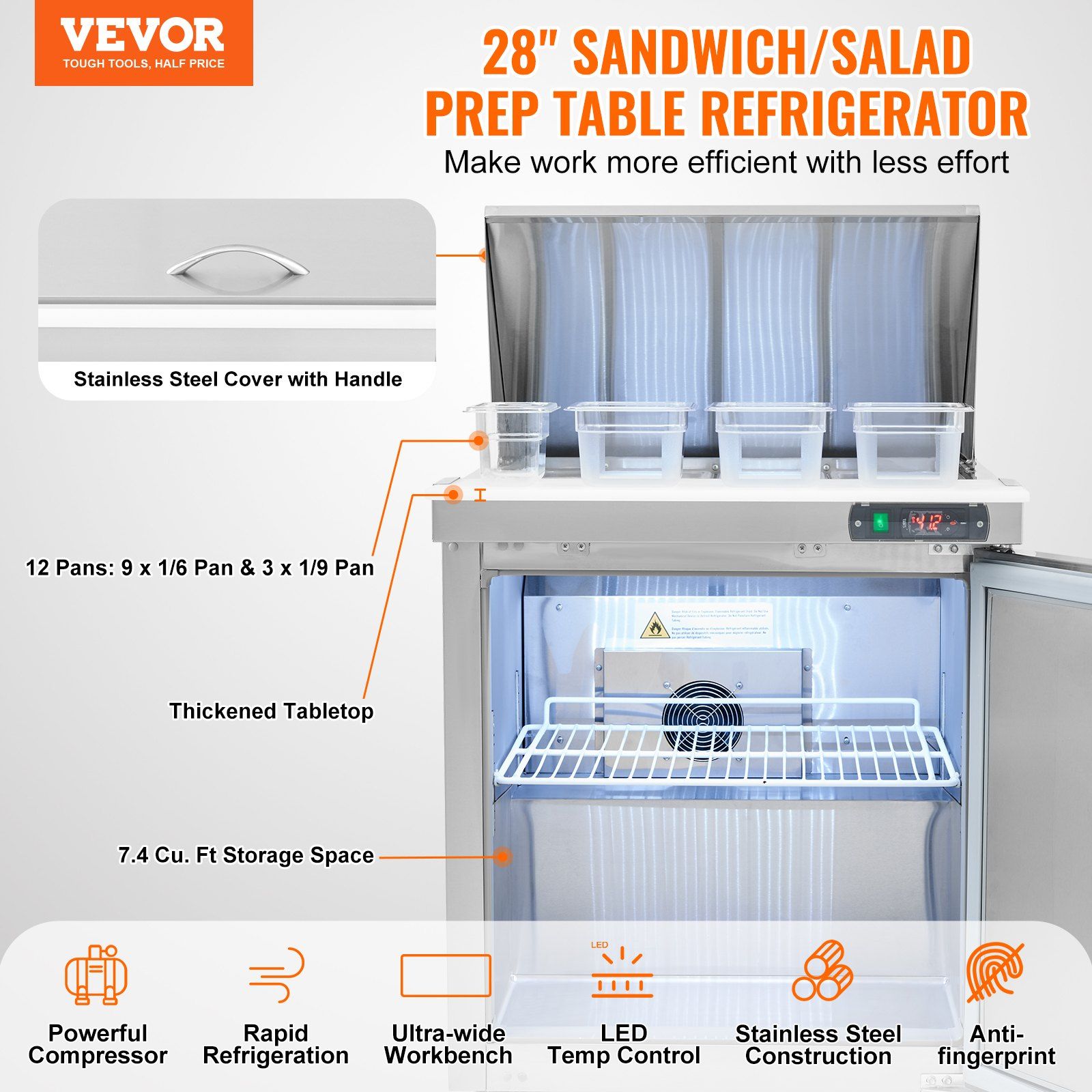 28" Commercial Refrigerator Sandwich & Salad Prep Table, 7.4 Cu. Ft Stainless Steel Refrigerated Food Prep Station with 12 Pans, Cut Board 28" Commercial Refrigerator Sandwich & Salad Prep Table, 7.4 Cu. Ft Stainless Steel Refrigerated Food Prep Station with 12 Pans, Cut Board 28" Commercial Refrigerator Sandwich & Salad Prep Table, 7.4 Cu. Ft Stainless Steel Refrigerated Food Prep Station with 12 Pans, Cut Board