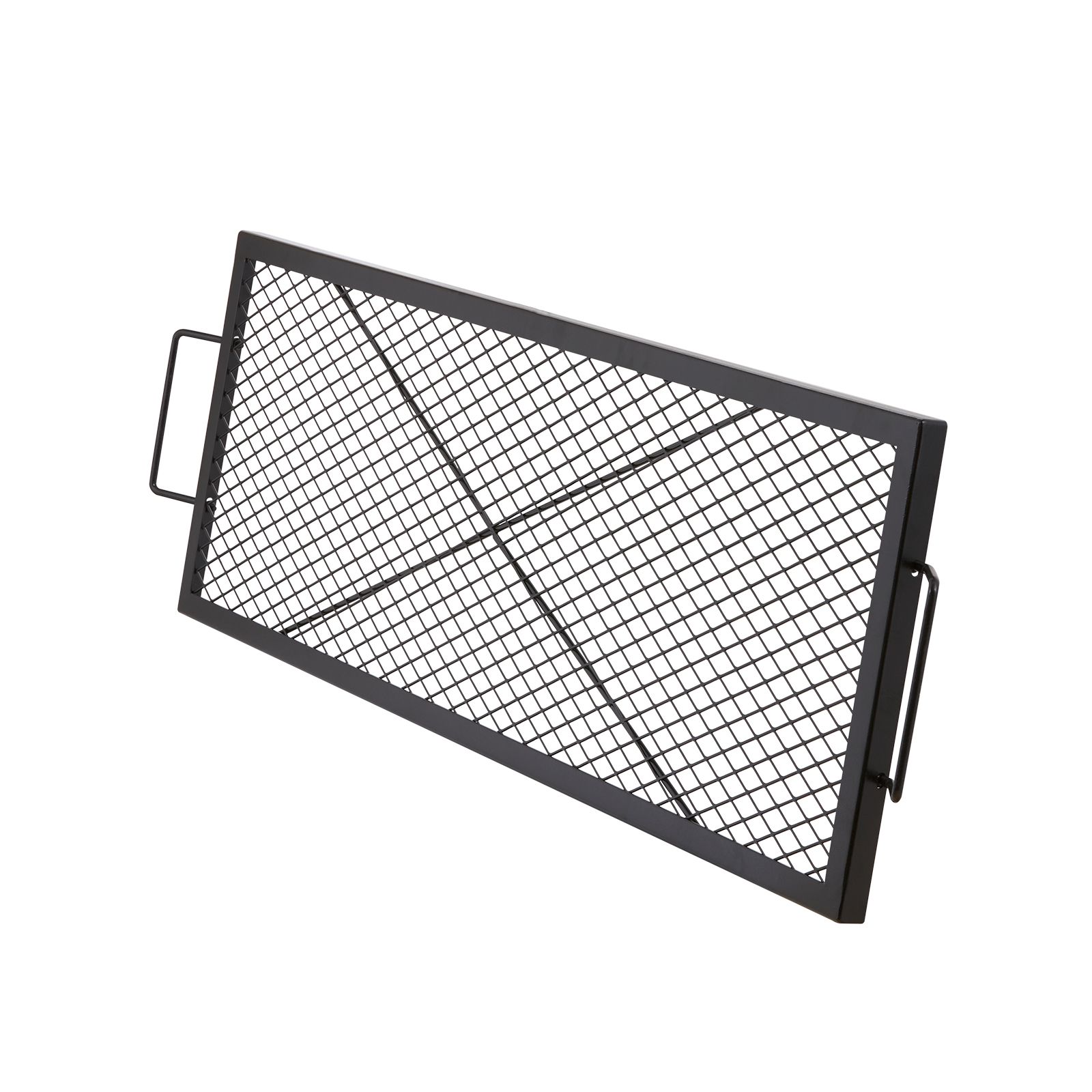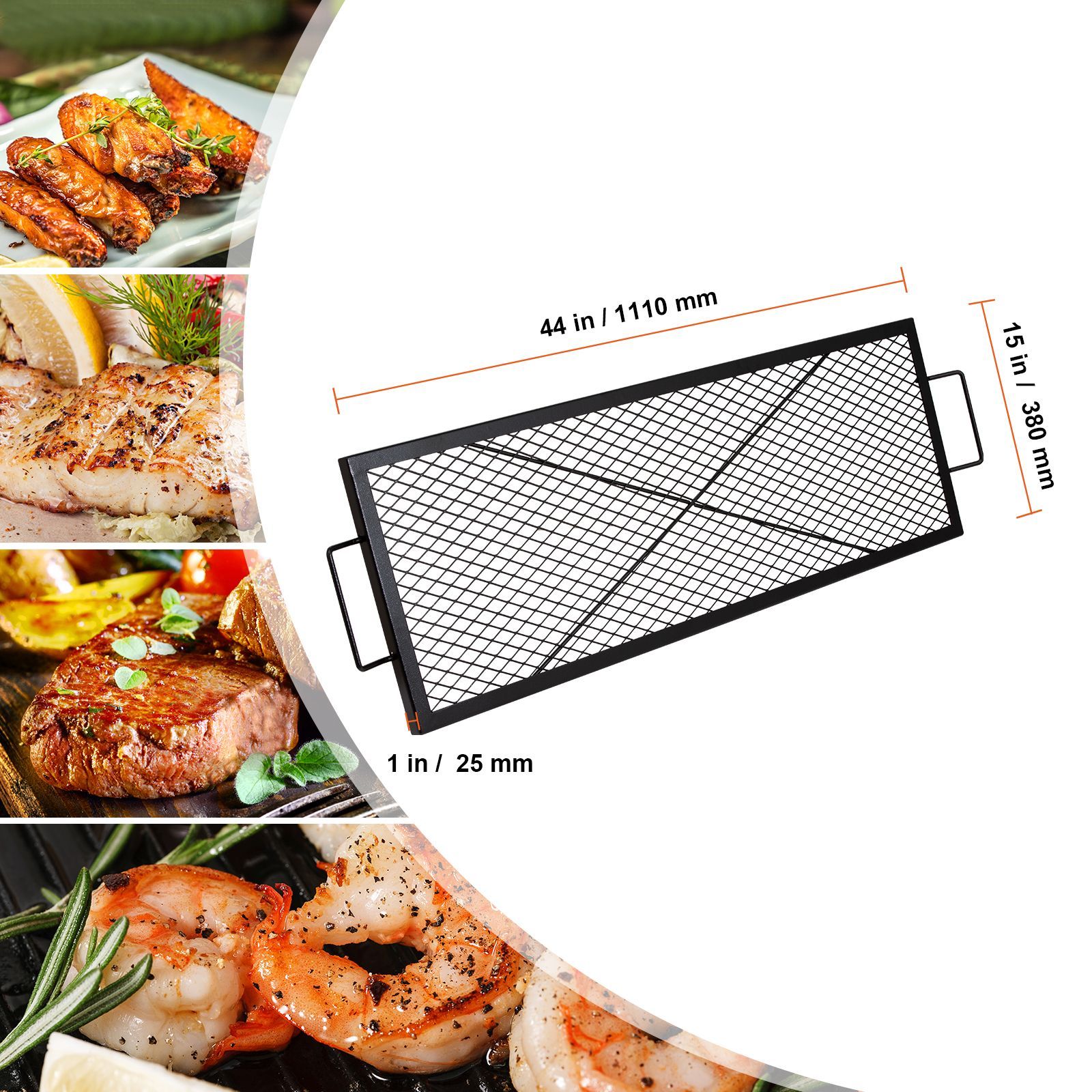 VEVOR X-Marks Fire Pit Grill Grate, Rectangle Cooking Grate, Heavy Duty Steel Campfire BBQ Grill Grid with Handle & Support X Wire, Portable Camping Cookware for Outside Party Gathering, 44 Inch Black